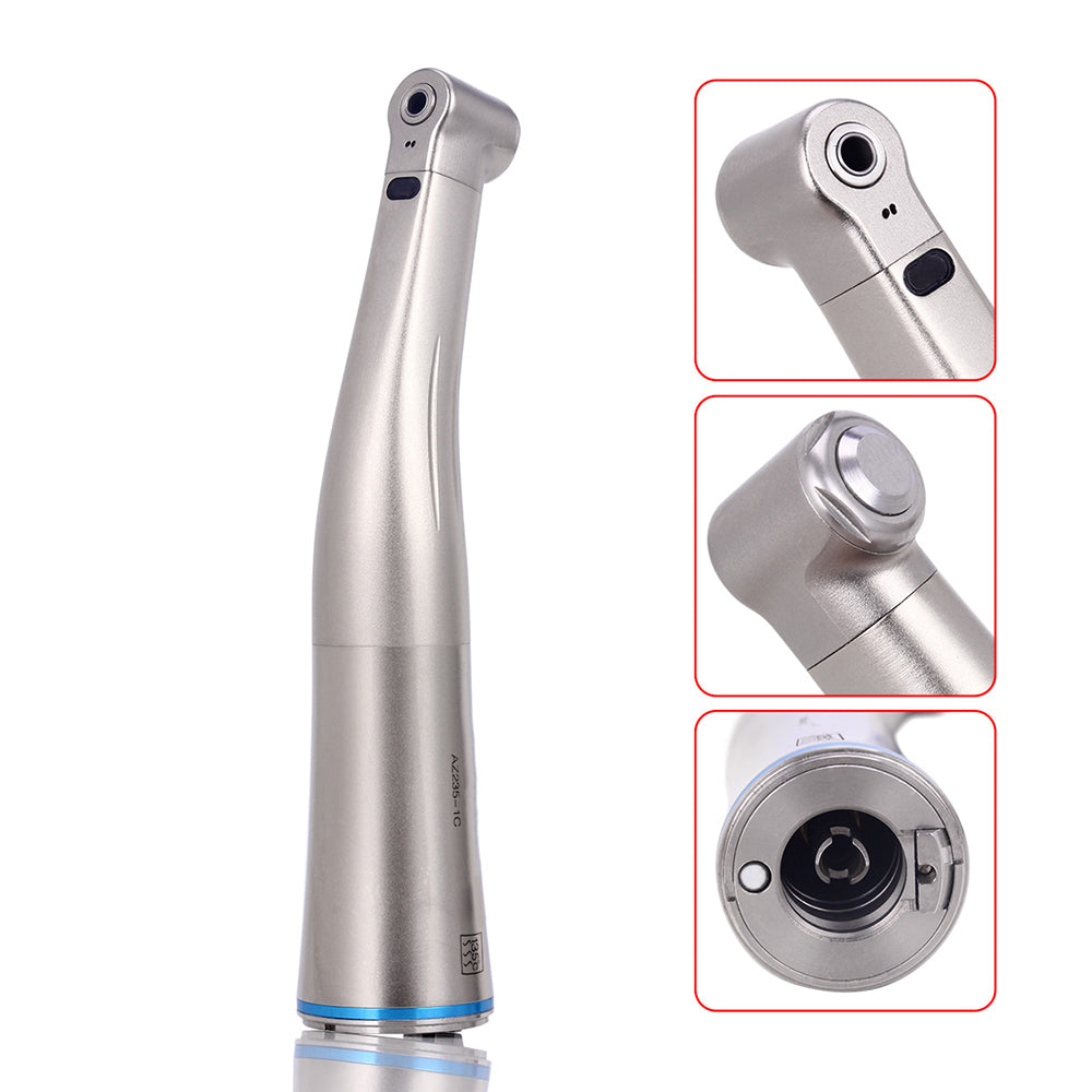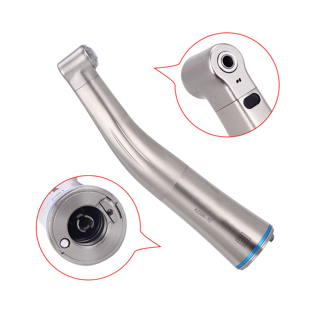 AZDENT 1:1 Fiber Optic Contra Angle Slow Speed Hanpiece Internal Water Push Button. 18,000-25,000rpm/min. Available For Various E-type Motors. Autoclavable To 135 ℃. Sturdy And Durable.