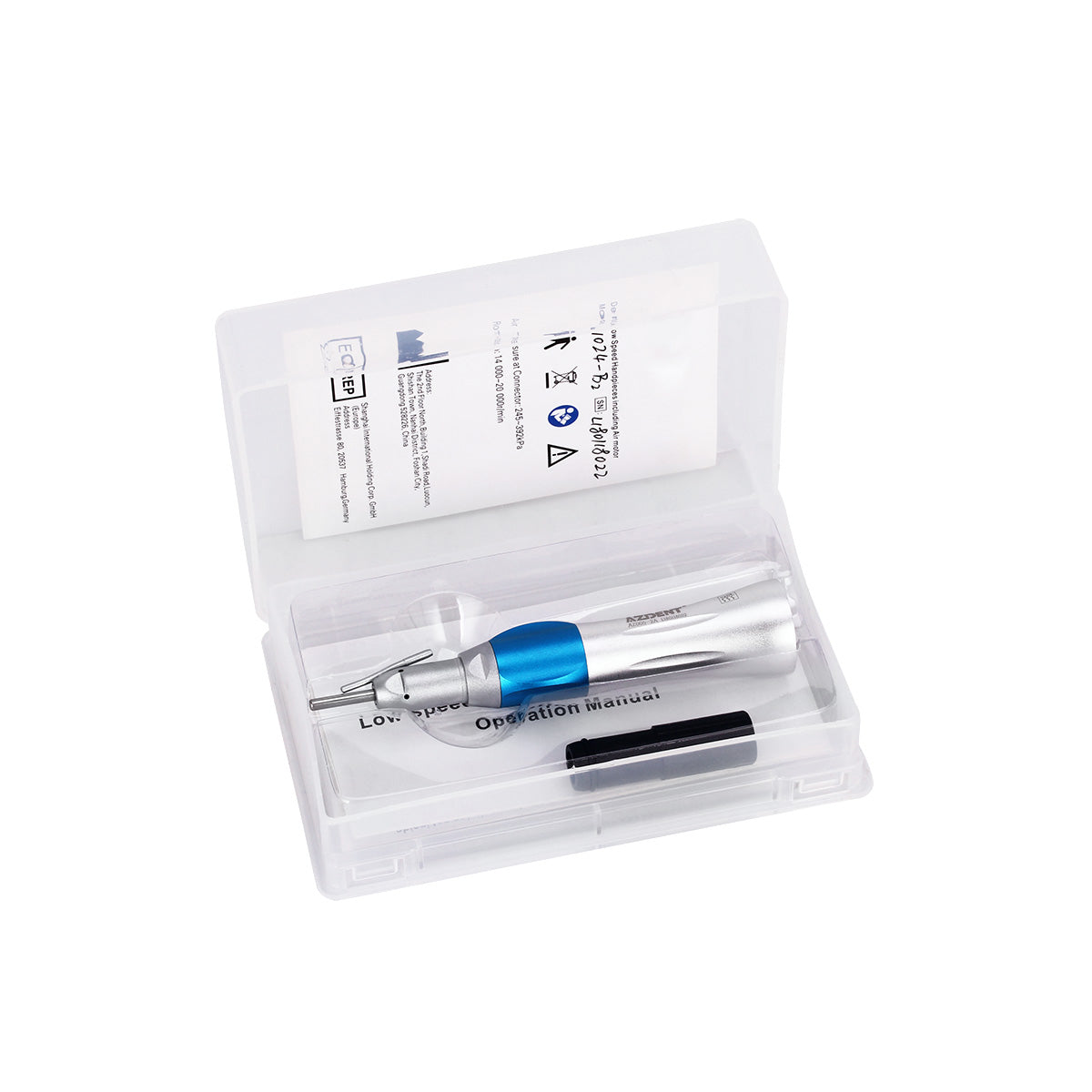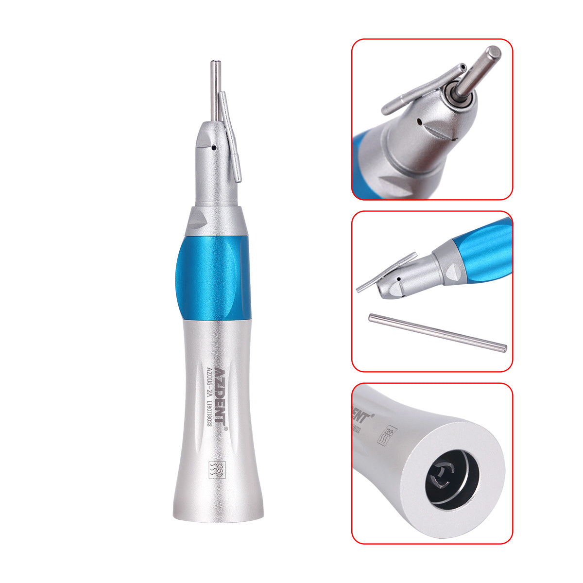 AZDENT 1:1 Slow Speed Straight Nose Cone Handpiece With External Pipe. 14,000-20,000r/min. Metal Rotary Sleeve, Can Resist The High Temperature. Sturdy and Durable. Warranty:1 Year.