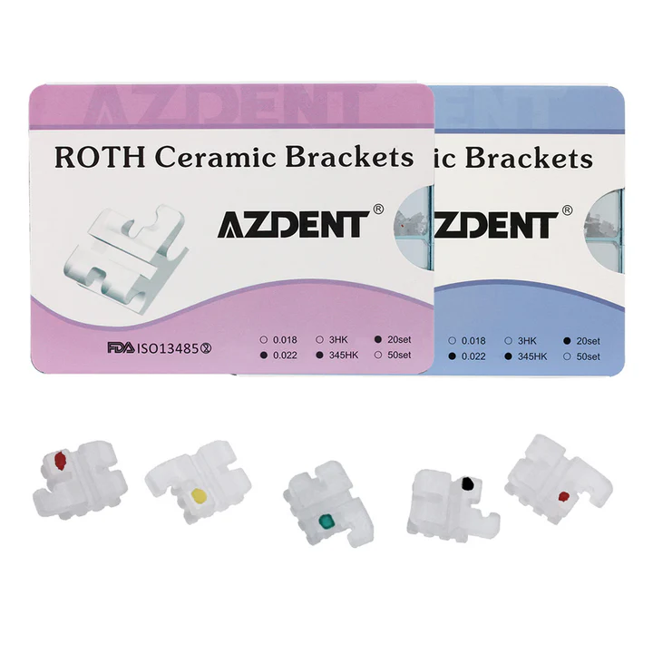 AZDENT Dental Orthodontic Ceramic Brackets Roth/MBT .022 345Hooks 400pcs/Box. Used for orthodontic dental treatment. Advanced material, low friction, comfort and high–tech.