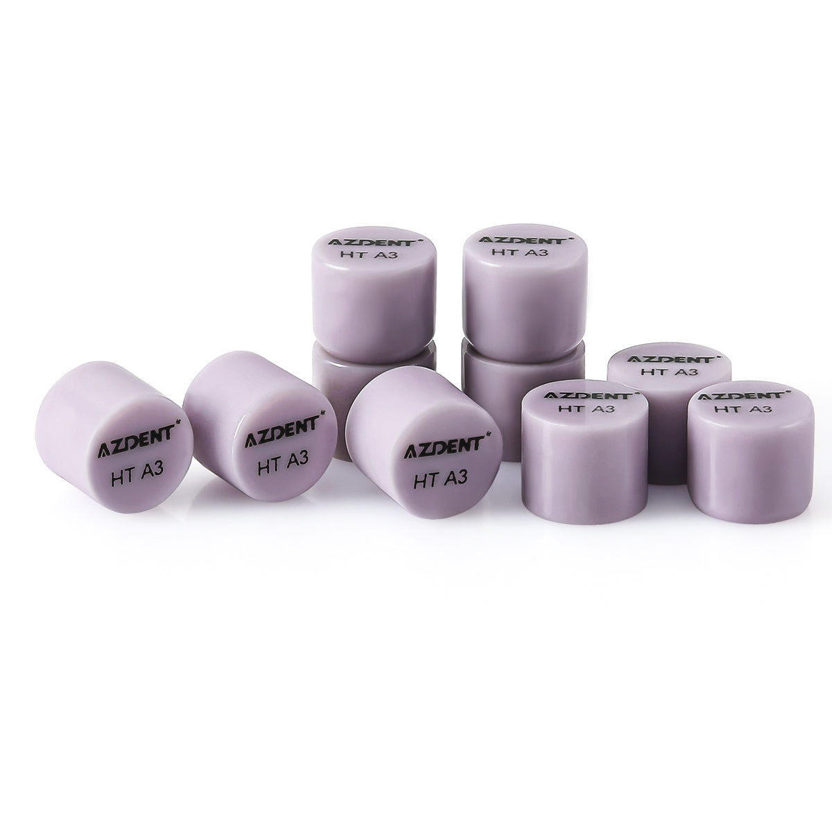 AZDENT Dental Ceramic Glass Ingots Press Lithium Disilicate Generation II Violet HT/LT/MO for Lab CAD CAM Restoration 10pcs/Box. User-friendly handling, providing patients with a convenient restoration experience. Rapid crystallization, the material of choice for immediate restorations. High strength and chip-resistant, suitable for the fabrication of various restorations. High translucency, replicating the natural coloration of teeth. Indications: Placing/Inlays/Anterior/Crown/Posterior Crown. FDA approved.